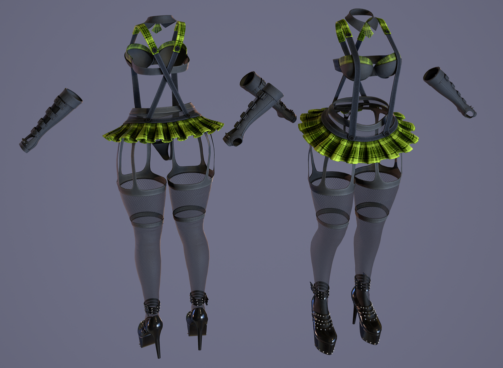 - Blender 3.0+ file with untriangulated mesh weighted and fitted for Panda's Female Base (purchased separately: https://pandaabear.gumroad.com/l/pAxQR)