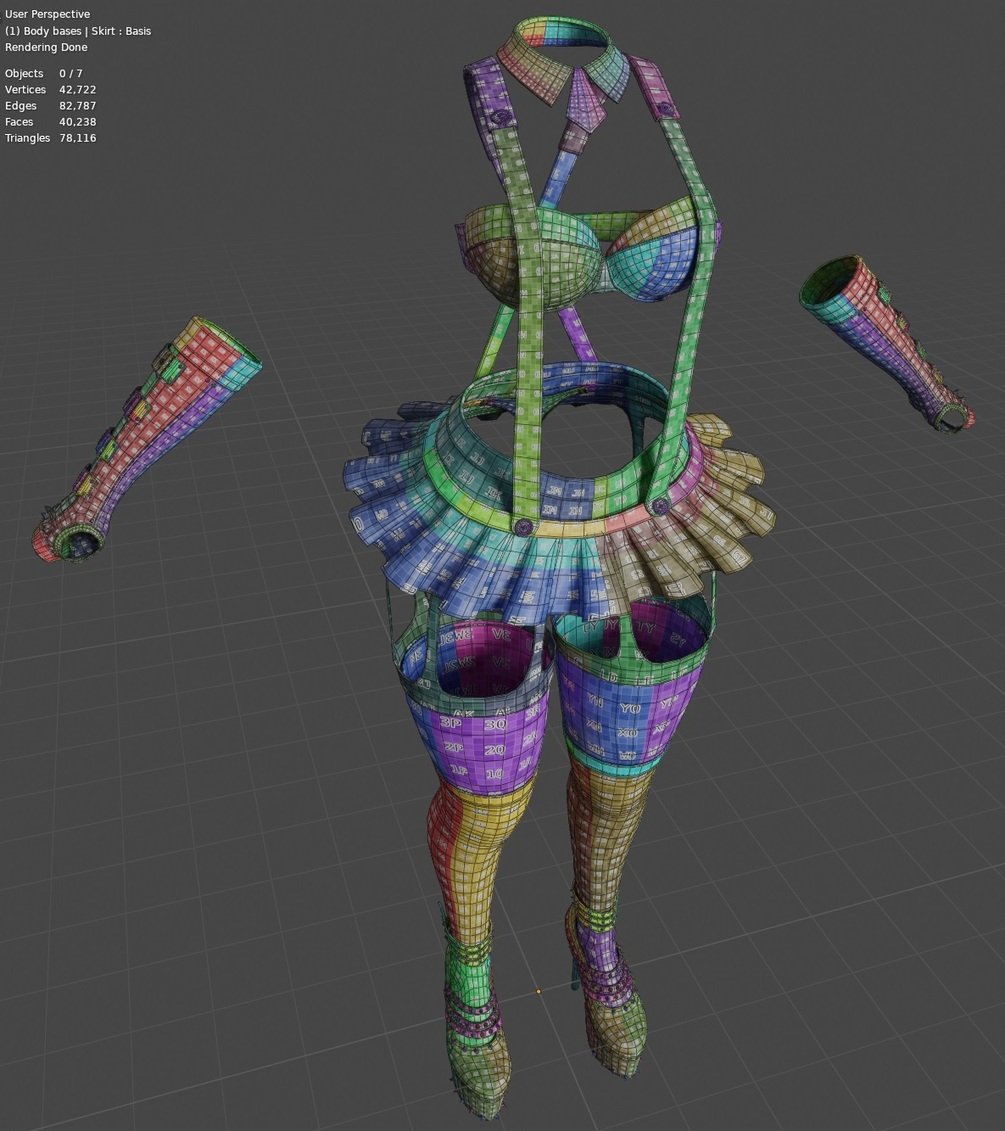 - Blender 3.0+ file with untriangulated mesh weighted and fitted for Panda's Female Base (purchased separately: https://pandaabear.gumroad.com/l/pAxQR)
